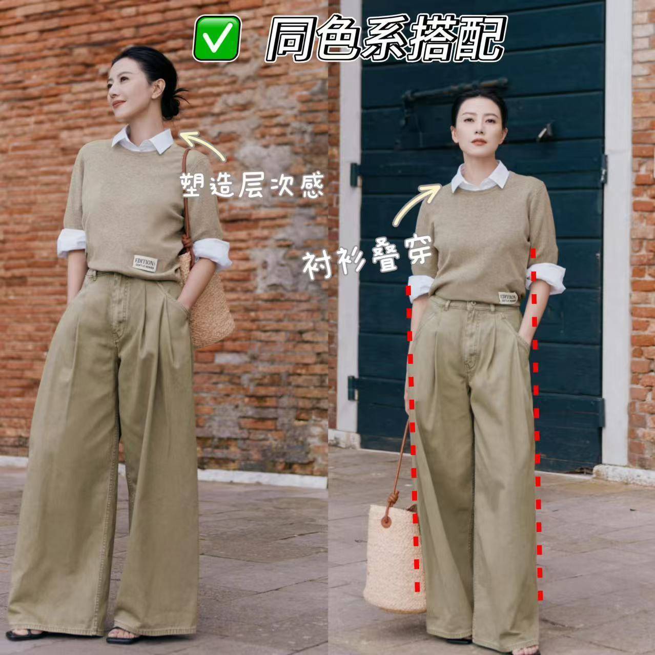 搭配思路1、同色系叠穿——最高级的懒人穿搭法