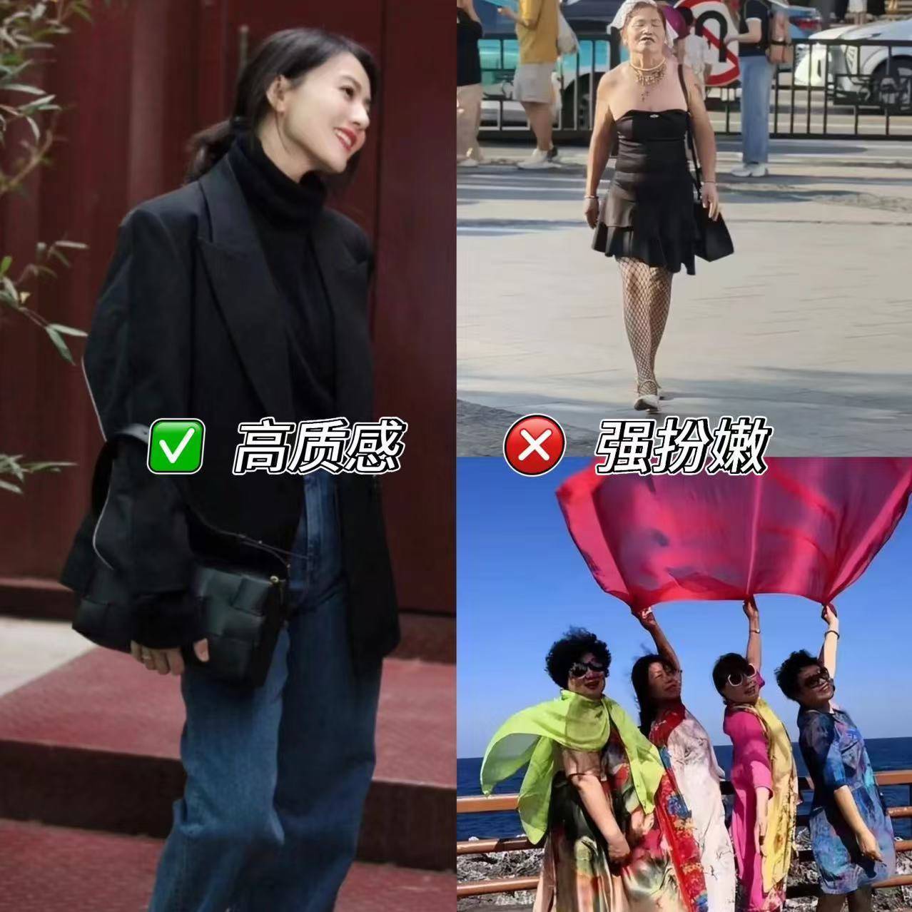 不得不说,女人上了年纪,真正的底气来自于内在,而不是满身的标志。不妨参考高圆圆的打扮,选择无明显logo、剪裁得体的单品,更能体现这个年龄段的自信和底蕴。