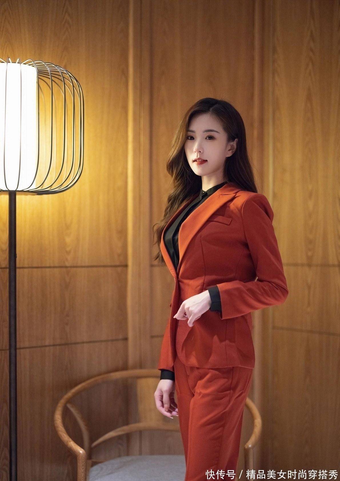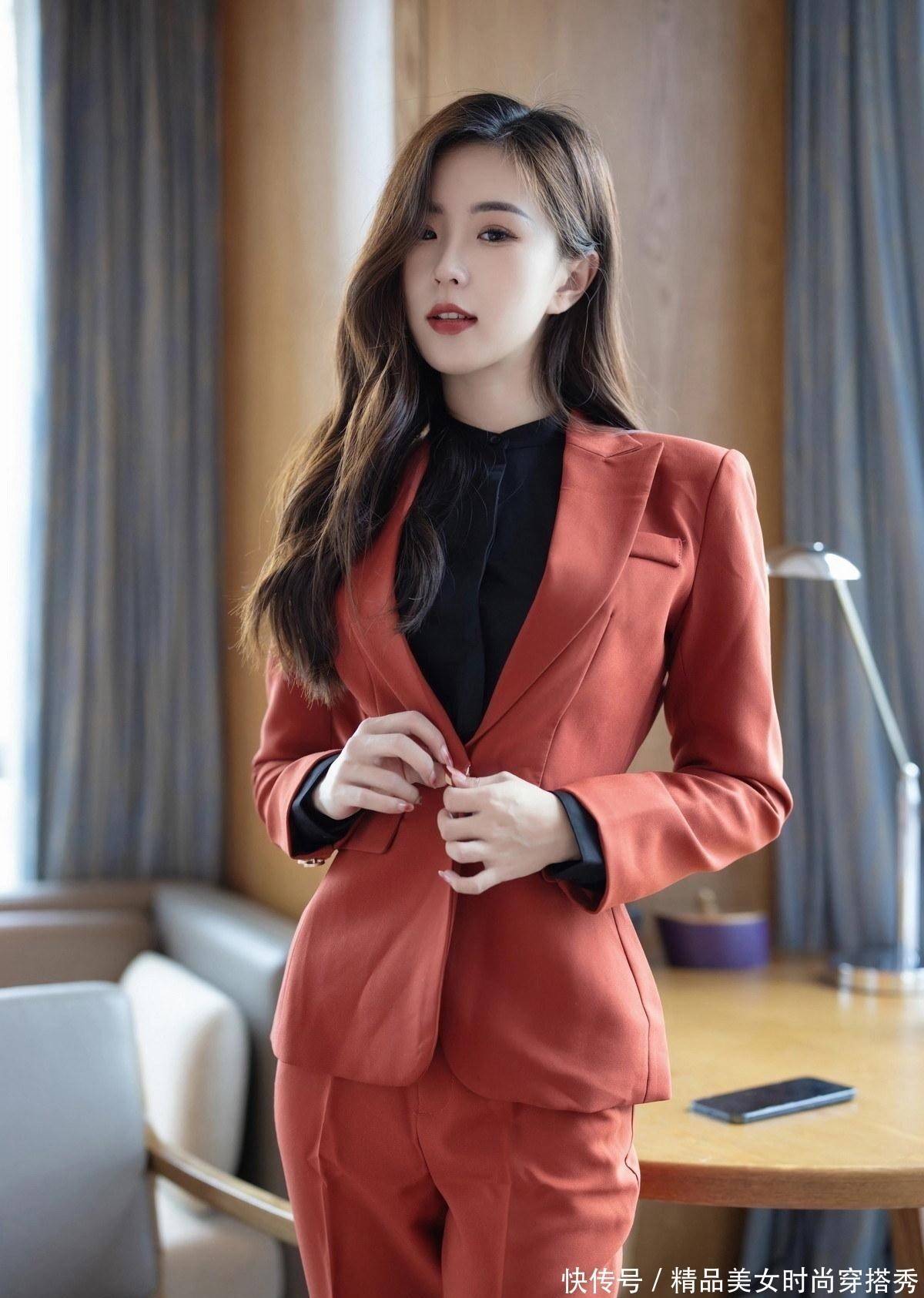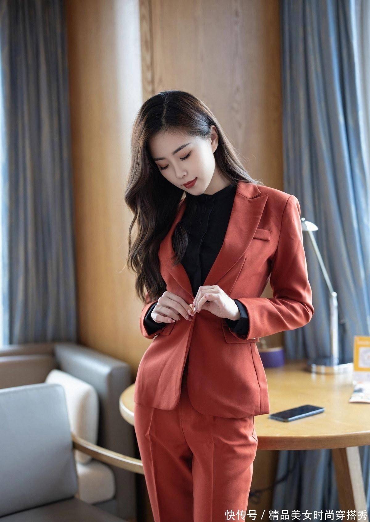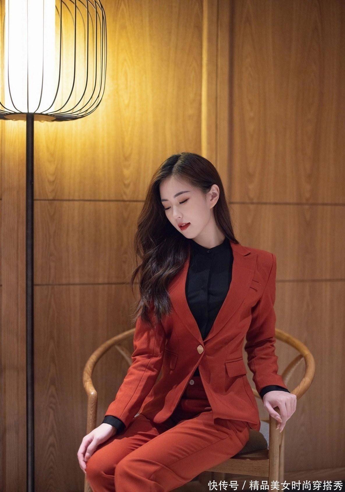 谁说西装只有黑白灰,楊紫嫣一袭暗红色的西装,穿出一种不一样的活力感