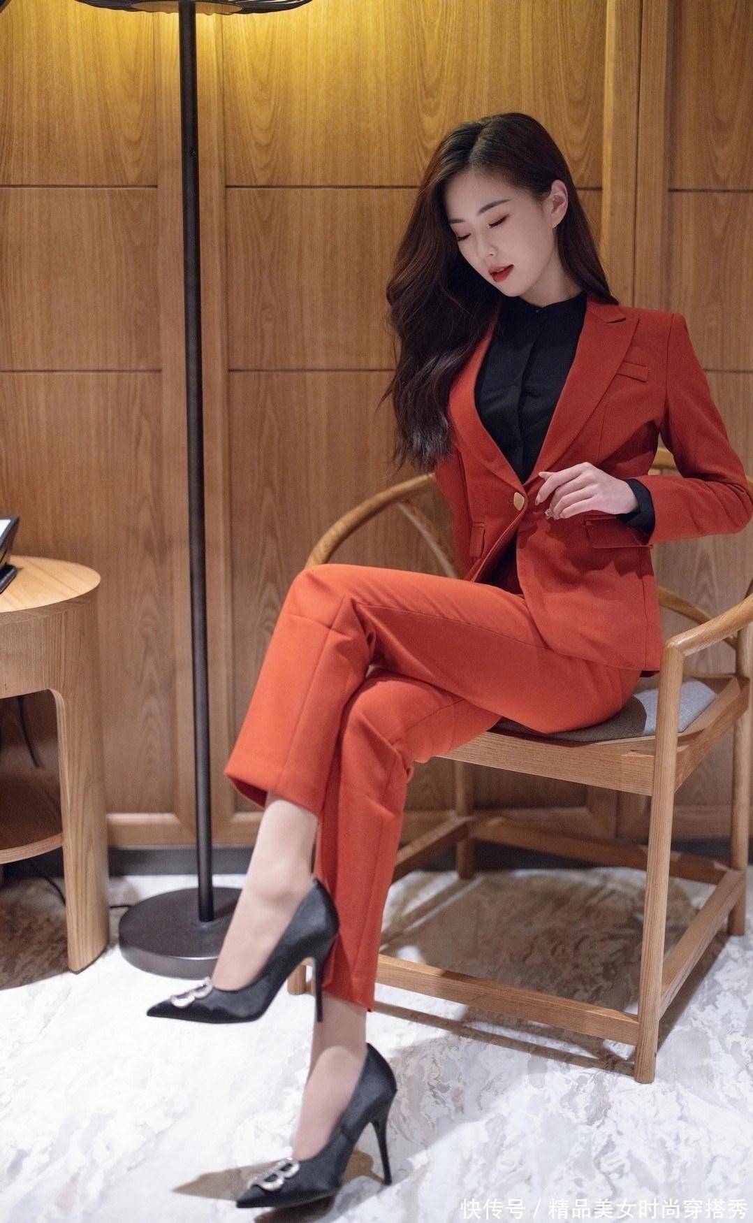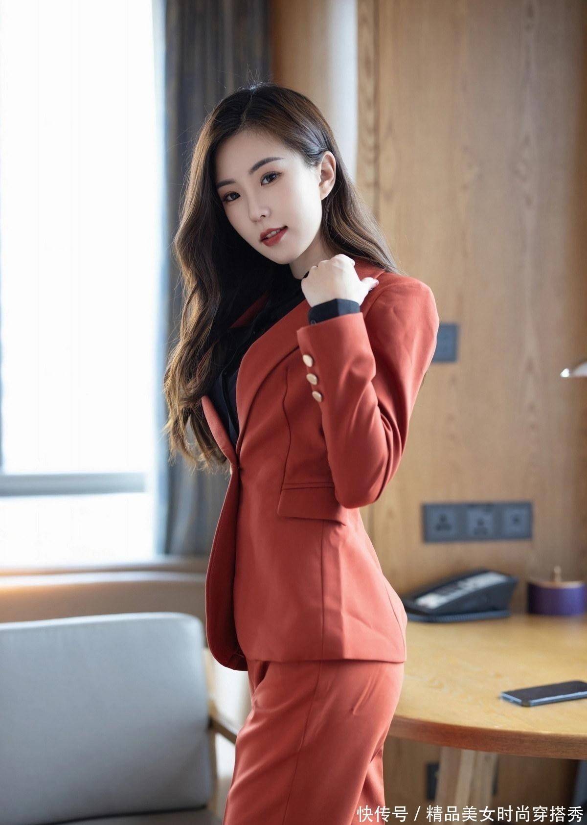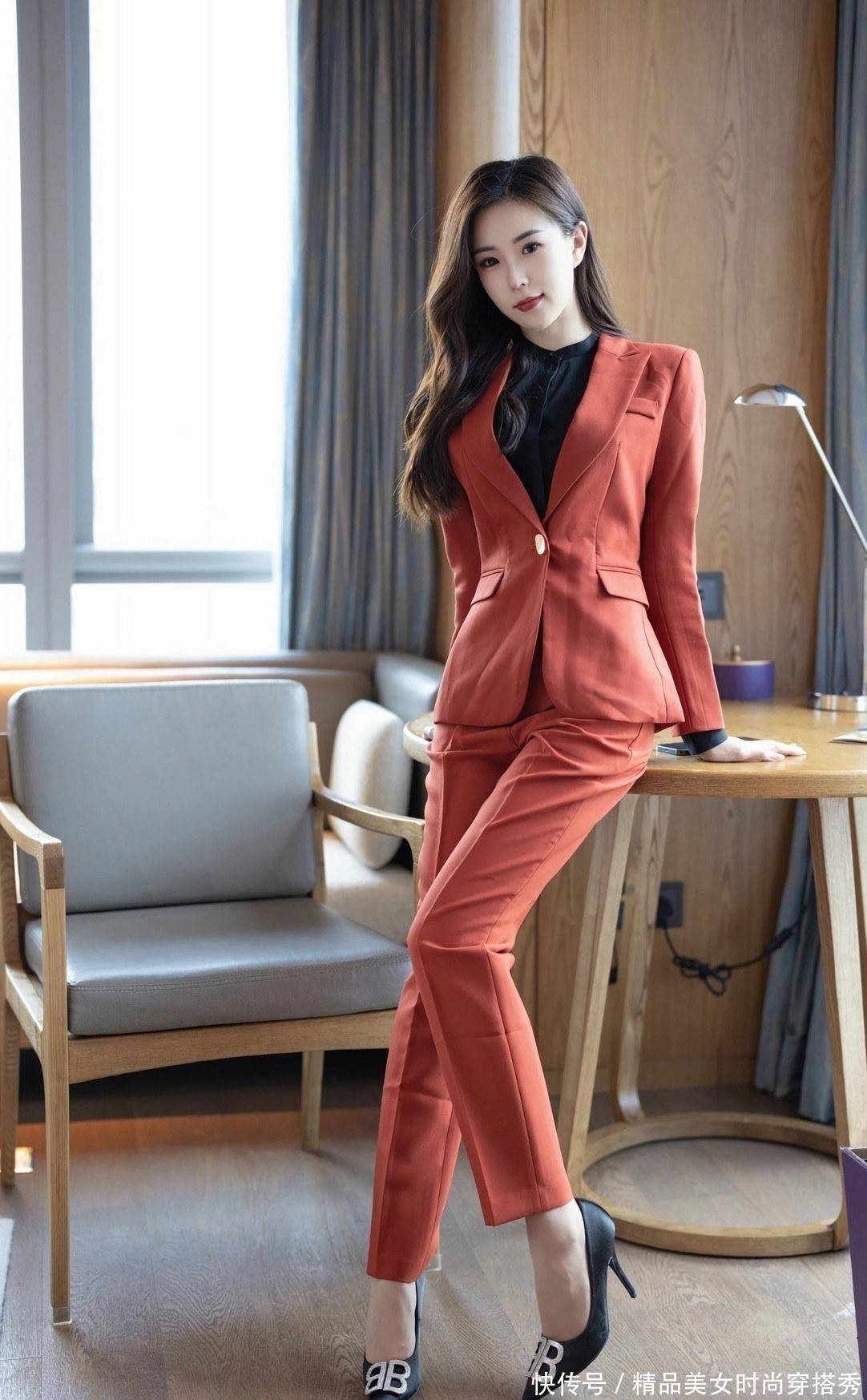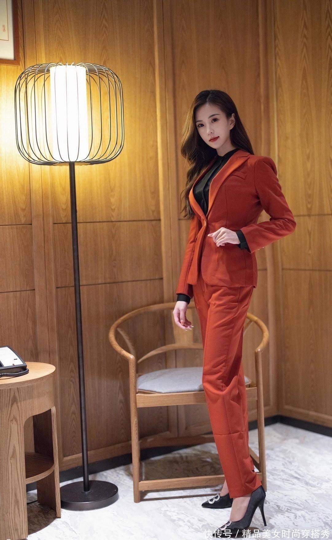 谁说西装只有黑白灰,楊紫嫣一袭暗红色的西装,穿出一种不一样的活力感