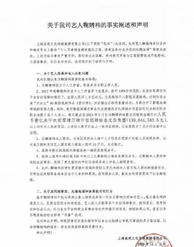 根据丝芭传媒的说法,自从鞠婧祎单飞之后,公司在她身上投资超过1.6亿多。截至2024年5月,结算并支付鞠婧祎的收入税前金额高达139044543.5元。不仅如此,鞠婧祎每月还能拿到25万元(税前)的固定收入,我们可以理解为:她的底薪为25万|月。