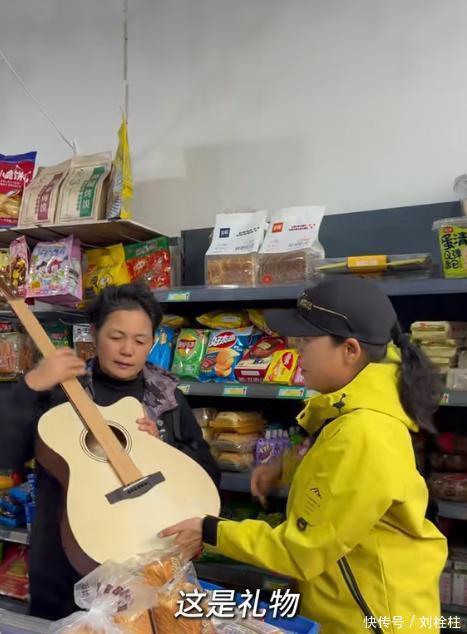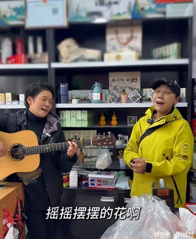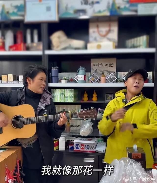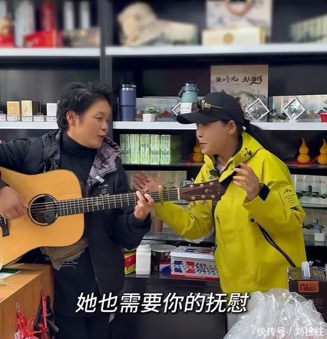 寒暄之后,田震也是拿出了自己准备的礼物,除了一束鲜花之外,田震还精挑细选了一把高档吉他,这个礼物无疑是赠送“淄博大燕儿”最好的铠甲,因为“淄博大燕儿”出名就是源于她拿着吉他自弹自唱《野花》。网红艺人和明星奔现当然也少不了艺术上的共鸣,手持大明星田震赠送的高贵吉他,“淄博大燕儿”也是和田震现场合作了一段《野花》。